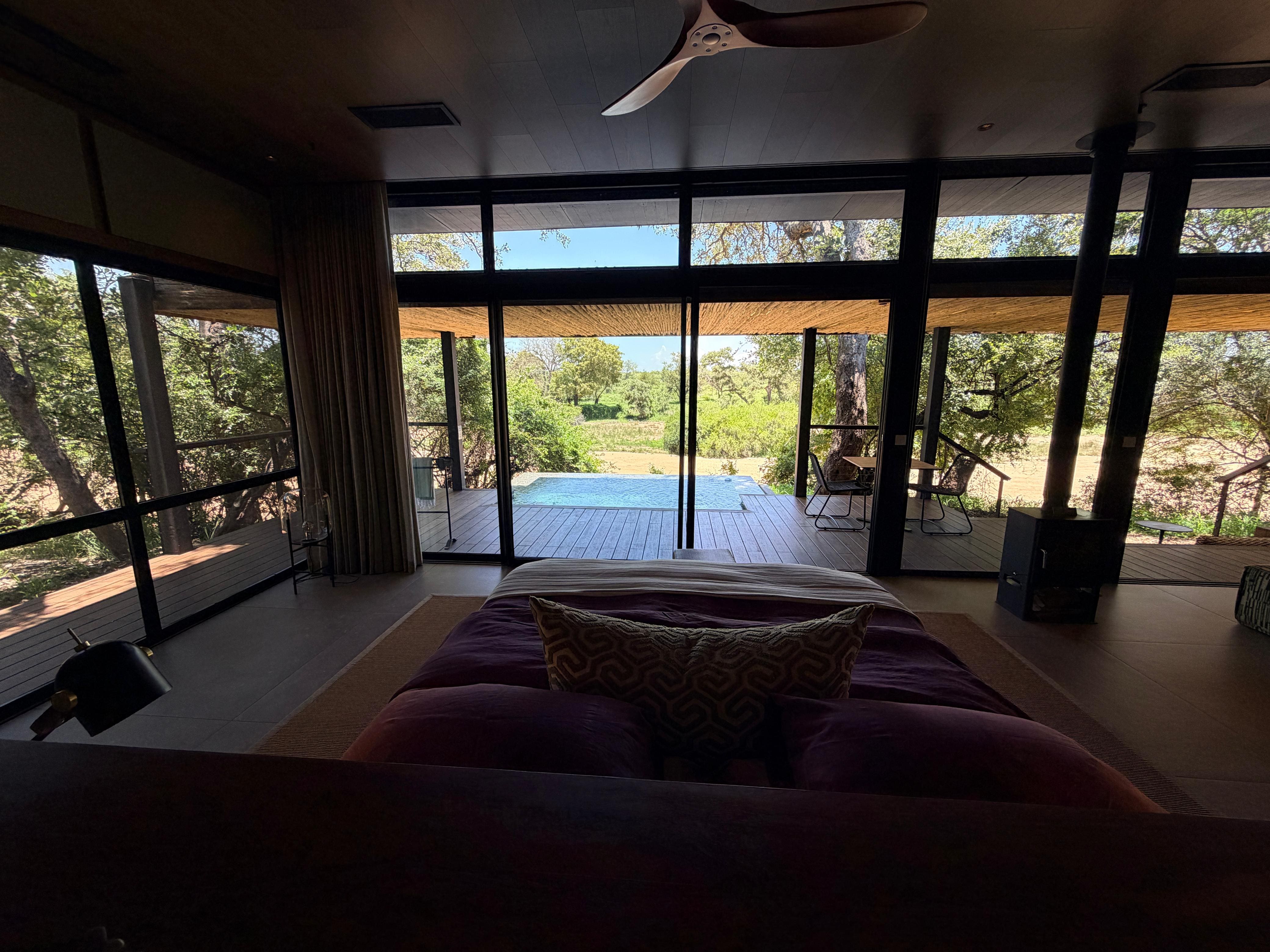 Eles tem apenas 5 cabanas, que são verdadeiras casas, no meio da reserva. Meu espaço tinha uma sala enorme, com bar, cozinha, além de dois quartos, piscinas privadas, banheiro, ducha ao ar livre e varandas.