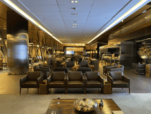 Pois bem, área de sitting é o que não falta nesta Sala VIP. Há diversas poltronas e sofás espalhados por todo o ambiente. As poltronas são bastante confortáveis e atendem perfeitamente o passageiro que passa por ali seja por um período rápido antes do seu embarque, bem como aqueles com longa estadia.